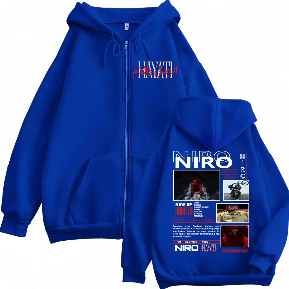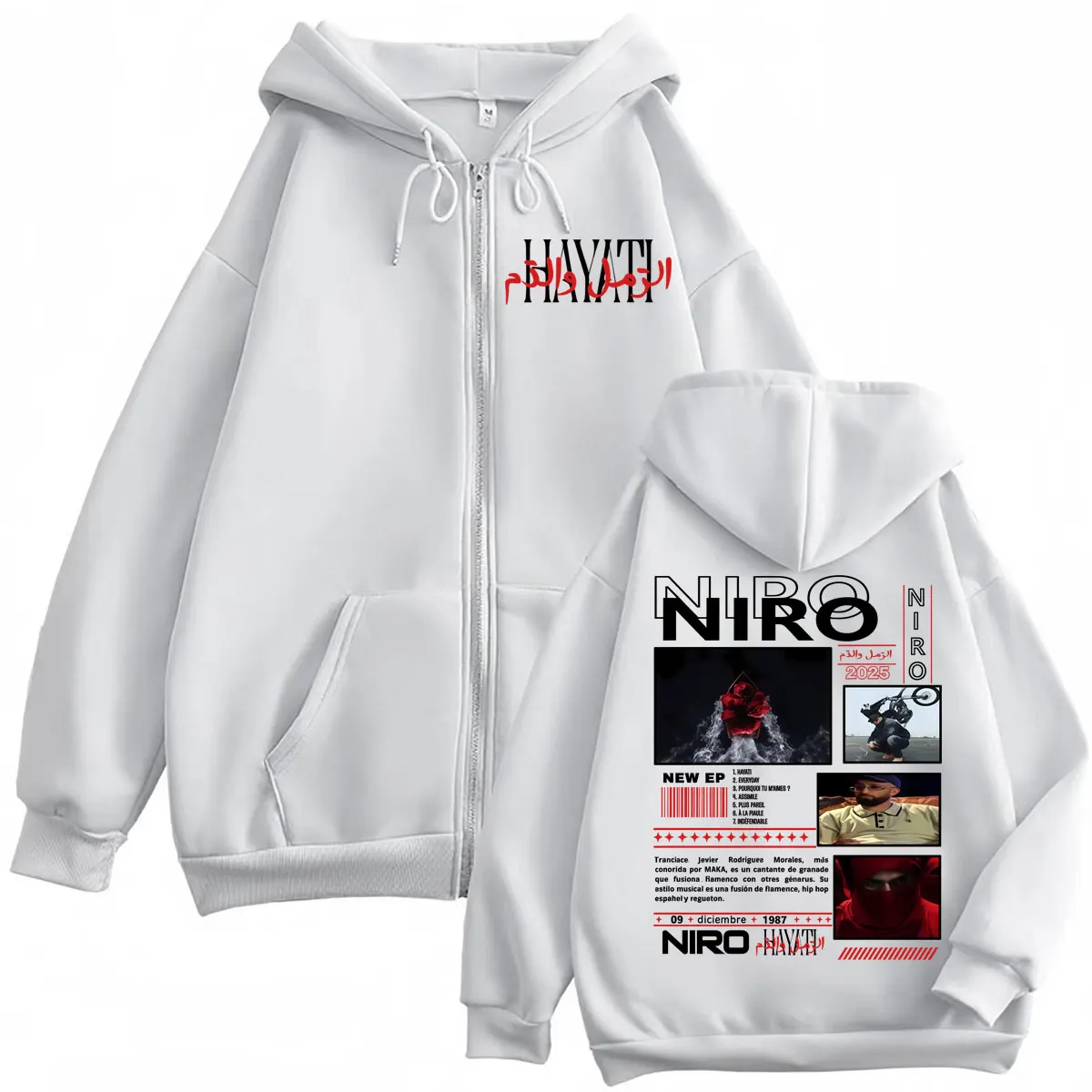 Inspiré par la sincérité et la force de Niro, ce hoodie zippé incarne l’esprit du rap de rue : vrai, brut et sans artifice. Confortable et stylé, il t’accompagne partout, que ce soit en studio, en ville ou entre potes.